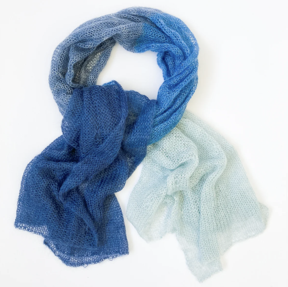 1) a mohair/silk pre-knitted ‘cobweb’ style scarf