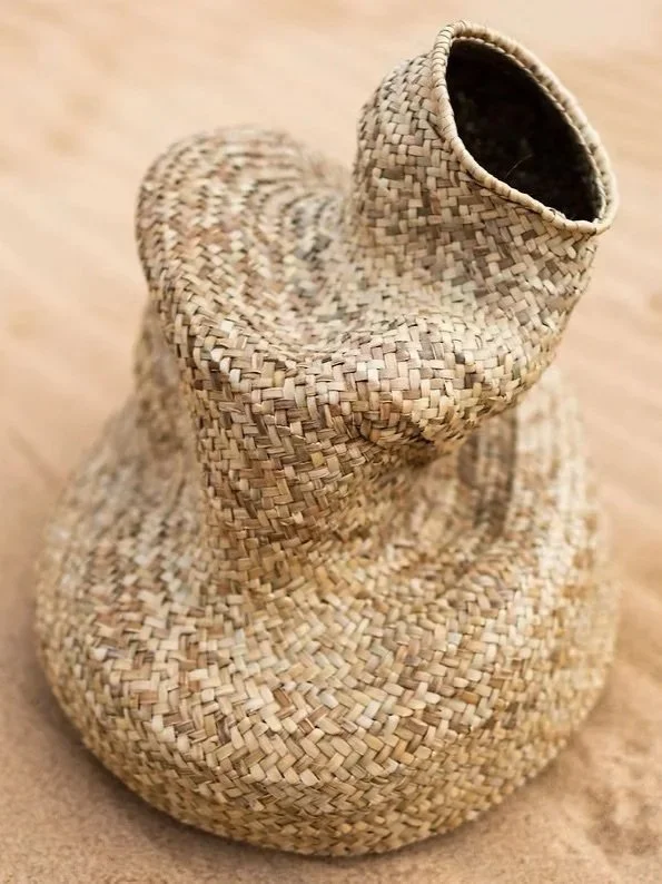 Born in Belgium and with a background in architecture, Ysaline Ophoff now lives and works in Portugal. In 2019, Ysaline to put her curiosity for the art of basket weaving into practice. She immersed herself in this ancient craft with local basket weavers in the Brazilian Amazon. By discovering the different layers of this craft—the technical know-how, the embodied nature, as well as the social and cultural aspects —her curiosity and desire to explore it grew more. In 2020 she relocated to Portgual and founded her studio, Atelier Balancê where she uses the local and endangered empreinta de palma technique to intuitively weave baskets whose shapes uniquely reveal her background as an architect. Based on ancient and traditional know-how, Ysaline applies basket weaving techniques on found materials, such as natural fibers and discarded materials, and aims to convert them into new shapes and objects through experimental manipulations.