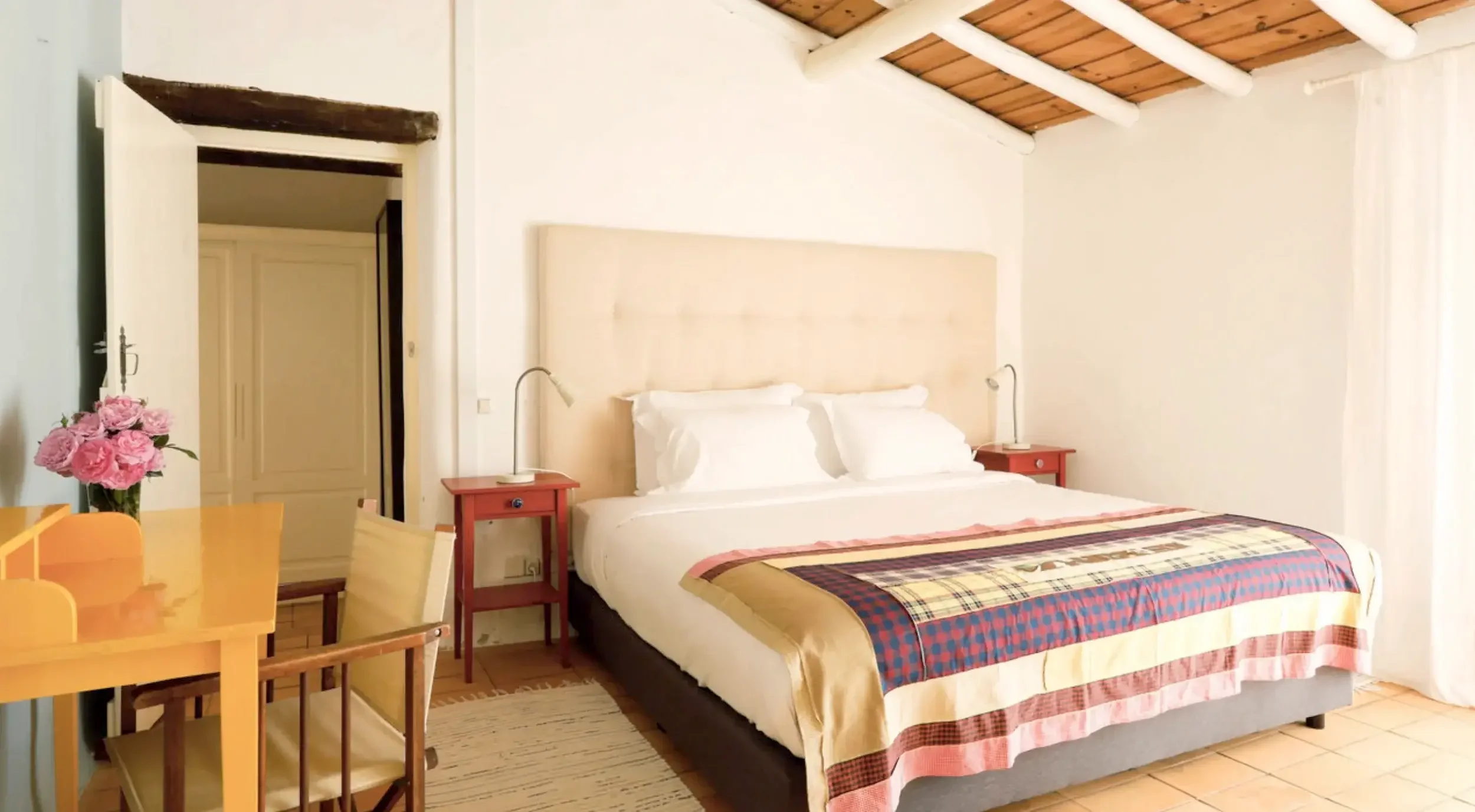 We’ll be staying at a rural boutique hotel, surrounded by stunning scenery and close to the spectacular Atlantic coastline. The hotel bursts with color, thanks the vivid paintings by owner and abstract painter Alfredo Moreira da Silva, combined with red, pink and orange doors, chairs, sofas, cushions, and handmade quilts.