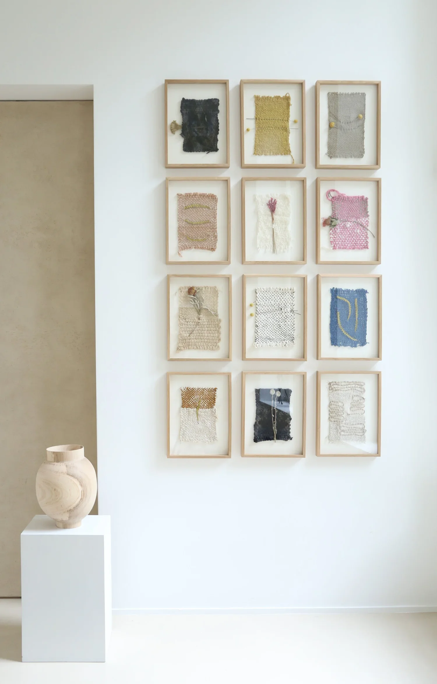 The small scale of these works references portraiture, inviting an intimate dialogue between the viewer and the woven form. Each piece reflects her evolving relationship with nature, where color and texture become tangible references to memory. Mordine Young’s iterative process underscores her belief in intuition as a guiding force leading her from one woven form, material, and pattern to the next.