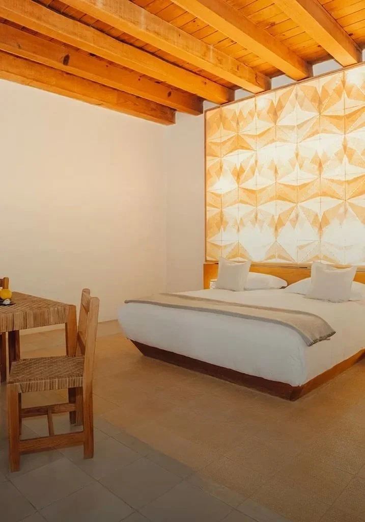 Private rooms have king-size beds. The interiors are designed by Héctor Esrawe with a modern minimal aesthetic, Scandinavian-style wooden design and contemporary Mexican-tiled floors.