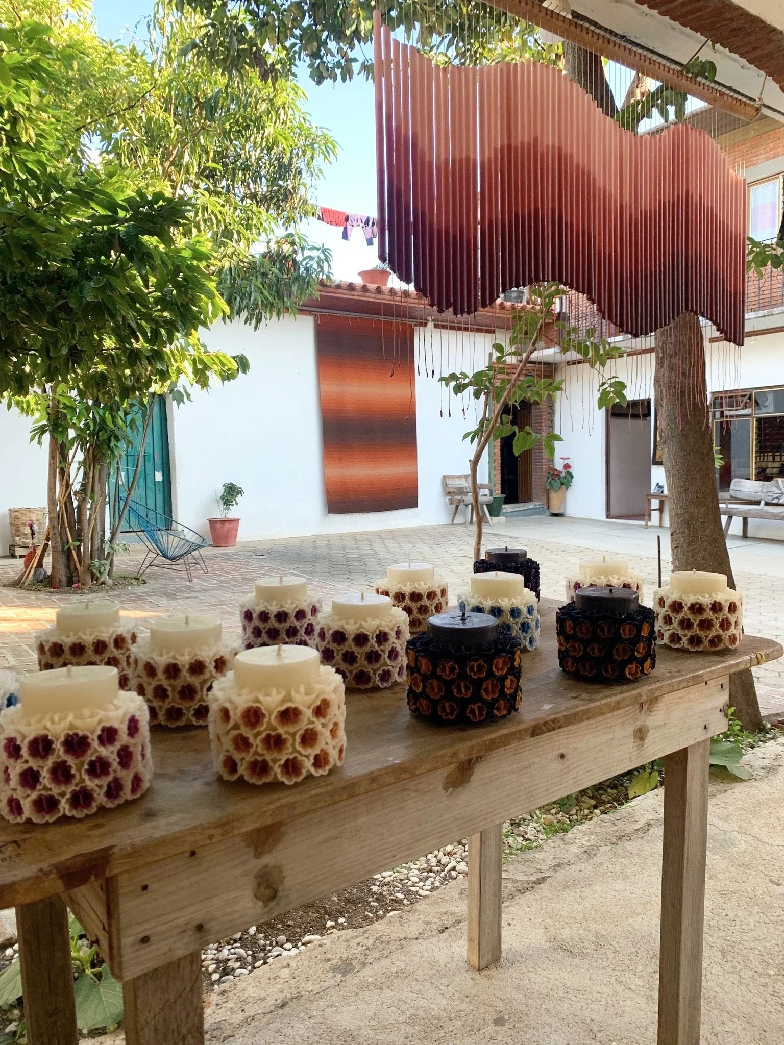 We will also visit Doña Viviana Alávez who will demonstrate how elaborate beeswax candles are made. Doña Viviana is a master of this timeless artisanal tradition, hand pouring and forming taper candles, sculptural flowers and skulls for day of the dead. The first thing that strikes you is the inviting aroma of beeswax, filling the air with a warm scent akin to that of sweet honey.
