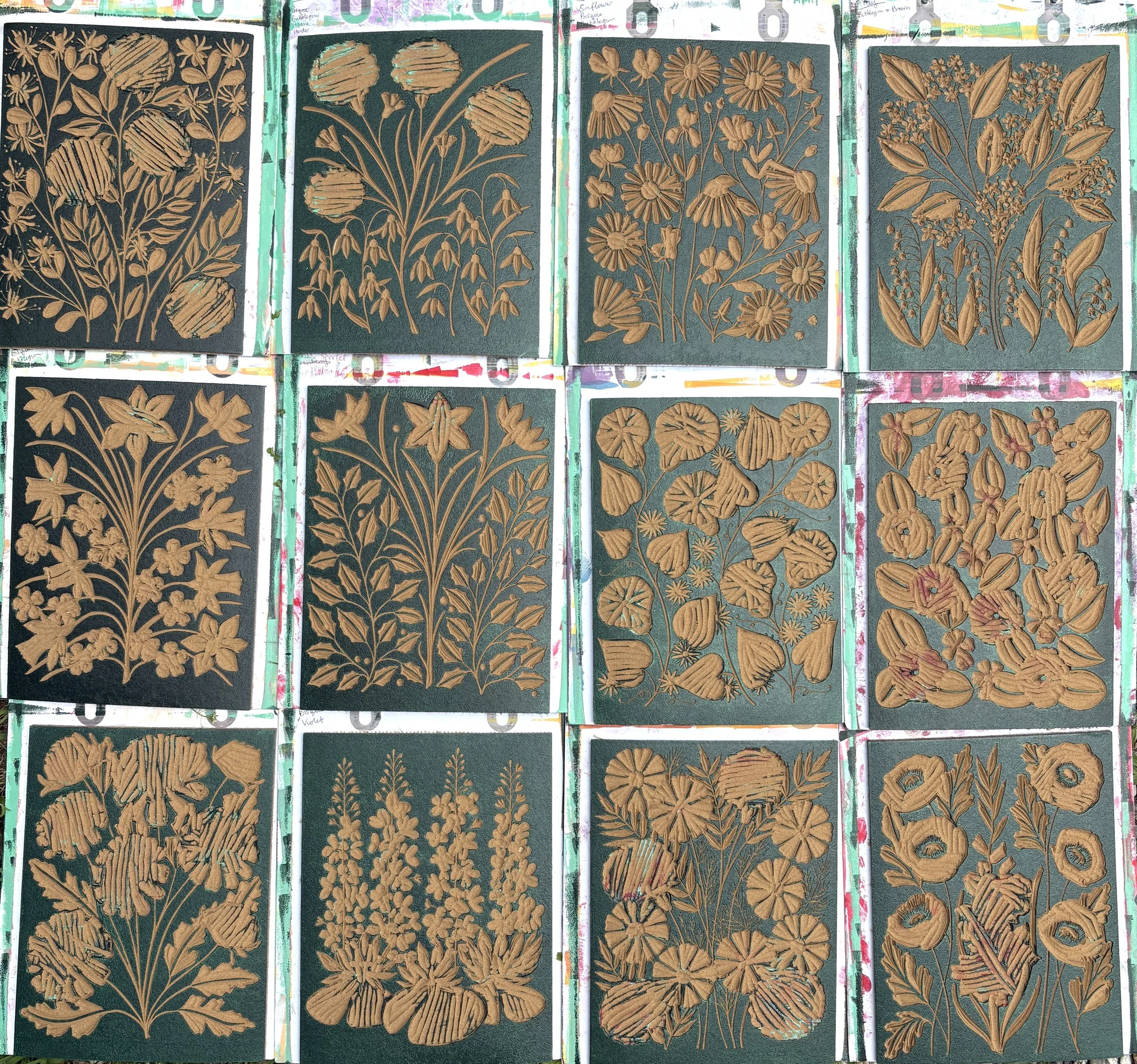 This morning we’ll continue our journey into printmaking and learn the fundamentals of reduction printing. Together with Katharine we’ll create a set of multi-layered, multi-colored prints using a single linoleum block.