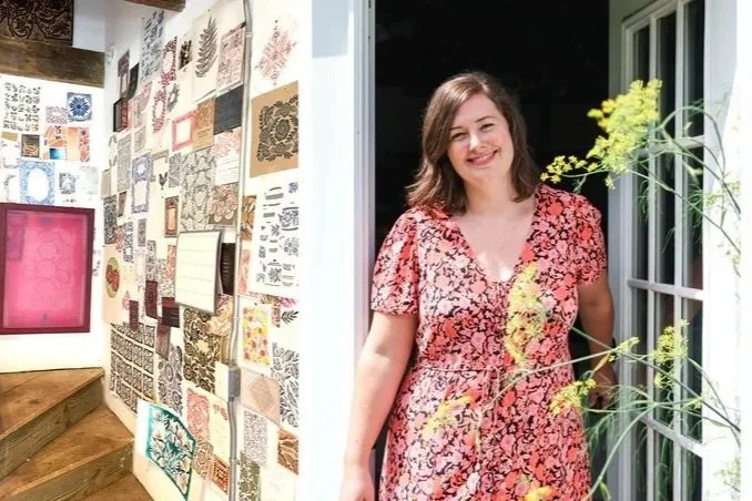 Multi-day workshop with Katharine, learning the materials and techniques of block printing, including how to create a tile repeat, a seamless pattern, and a large-scale reduction print with multiple layers and colors